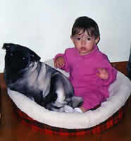 Demandan de la atención de su amo y pueden llegar a ponerse celosos si no se les hace caso o se les da la debida atención. Poco ladradores aunque ruidosos por su respiración o al dormir (por tener el hocico chato). Nunca espere que su Pug ladre muy fuerte o insistentemente por la presencia de extraños ya que son perros muy amistosos. Con los niños son gentiles y se llevan muy bien, aunque siempre que haya perros y niños juntos deberá haber un adulto supervisando. Con otros animales y perros tampoco habrá problemas de convivencia, se llevarán muy bien. |