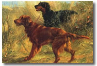 El Setter Irlandés Rojo es el color más conocido alrededor del mundo; producto de toda una variedad de Spaniels y Pointers, es descendiente directo del Setter que inicialmente era de color blanco y rojo, en su nativa Irlanda. En el siglo XVIII, como consecuencia de una crianza intensamente selectiva, surgió esta raza, dotada de un pelaje lustroso y castaño puro, la cual habría de ganar tanto simpatías, como premios en las primeras exposiciones caninas, llevadas a cabo en Inglaterra cien años después. Así, en la exposición de Dublín en 1875, el 50% de los perros inscritos en la raza, presentaban un pelaje enteramente rojizo. Algunos expertos argumentan que en el siglo XIX, el Setter Irlandés Rojo fue perfeccionado mediante cruzas con el Gordon Setter, raza desarrollada en Escocia. Esta afirmación respalda el hecho de que en algunas ocasiones nace un cachorro negro en una camada de perros rojos, y podría ser la razón que llevó a los escritores del estándar original a prohibir cualquier rastro de color negro en el Moanruad. El “Irish Setter Club of América”, es responsable del nombre “Irish Red Setter” o “Setter Irlandés Rojo”, instituido con la finalidad de identificar el origen de la raza en ese país. En 1885 se forma en Dublín el Club de Setter Irlandés, y un año después, se da a conocer el primer estándar oficial, junto con una completa escala de puntos para su juzgamiento. Los cambios en la raza fueron notables, tanto que a finales del siglo XIX, ya existían dos tipos de Setter Irlandés Rojo: