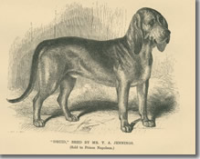Bloodhound que Los pequeños San Huberto fueron descritos por los cinólogos europeos, Turbeville y Caius, como: “De muy buen olfato, de cuerpo largo, patas cortas, y con grandes orejas que colgaban en forma de péndulo”. Esta descripción corresponde al que posteriormente sería llamado “Basset de las Ardenas”. El Perro de San Huberto, debido a sus notables cualidades, fue distribuido entre la nobleza europea, quienes preferían a los ejemplares negro y fuego para la caza de lobo y jabalí. La variedad de color , blanco puro, que era muy poco deseada