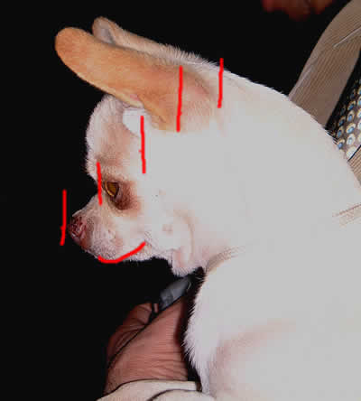 EN LOS CHIHUAHUEÑOS LA NARIZ SIMPLEMENTE DEBE SER CORTA Y SU COLOR DEPENDERÁ DEL COLOR DEL MANTO DEL EJEMPLAR. |