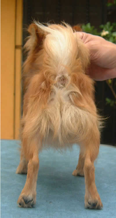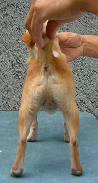 LOS MIEMBROS POSTERIORES SERAN RECTOS, CON LOS SUFICIENTES MÚSCULOS Y BUENOS LIGAMENTOS PARA SER SANOS, HABRÁ QUE TENER ESPECIAL CUIDADO EN NO PERMITIR LA LUXACIÓN DE LA PATELA, (RODILLA) ENFERMEDAD CONGENITA DEBIDO A DEFORMIDADES ANATÓMICAS, O POR LIGAMENTOS, TENDONES Y MÚSCULOS DÉBILES QUE CAUSA QUE LA PATELA SE SALGA DE LA CAVIDAD EN QUE LA ALBERGA EN EL FEMUR, TAMBIÉN SE PUEDE PRESENTAR POR TRAUMATISMOS.