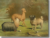 bocetos de tres razas que hoy en día se Perros deportistas y fieles compañeros de diversos tamaños, que desde la Edad Media se encontraban presentes en la vida aristócrata; desde el Galgo Italiano, el más pequeño en el regazo de las damas italianas, hasta el Greyhound y posteriormente el Whippet, quienes a partir del siglo XIX fueron reconocidos como los protagonistas de un veloz y emocionante espectáculo, haciendo gala de sus mejores habilidades. |