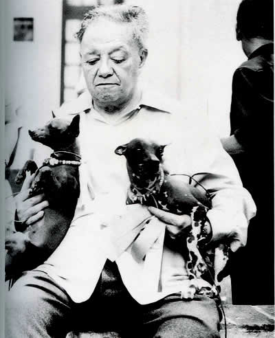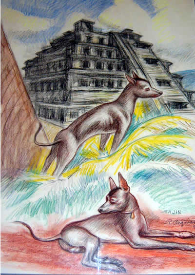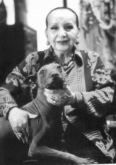 mexicanos después de la caída de Tenochtitlan en 1521. En ese mismo siglo XIX los franceses utilizaron la piel de estos perros para la elaboración de artículos como cinturones, carteras, etc. Afortunadamente entre los años 1930’s y 40’s, del Siglo XX hubo personas interesadas en conservarlo vivo entre ellas, algunos artistas como el muralista Diego Rivera (1886 – 1957), quien fue propietario de varios de estos ejemplares. Fue tanto su apego a ellos, que actualmente los podemos observar en algunos de los maravillosos murales que plasmó en diferentes Edificios de la Ciudad de México.Uno de los ejemplares favoritos de este gran pintor y de su esposa, la también pintora Frida Kahlo (1907 – 1954), era una hembra de color cobrizo y que presentaba un tupé de pelo café claro en la cabeza, y a la que llamaban "Güera Chabela” incluso ésta aparece en un cuadro de Frida que lleva por título el nombre de la perrita; También el pintor oaxaqueño Rufino Tamayo (1899 – 1991) los pintó.