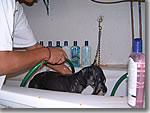 El baño estimula la piel, remueve el exceso de grasa, polvo y bacterias, elimina el pelo muerto, suciedad y parásitos externos, hace que el perro se vea bien y que huela a limpio. Además de que será junto con un buen cepillado y secado una parte determinante para la calidad del terminado en la estética de nuestro perro.